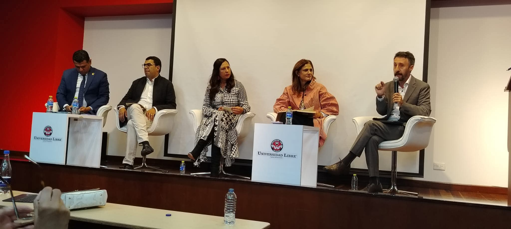 La foto corresponde a una jornada académica mostrando las bondades de la Región Metropolitana BOGOTÁ – CUNDINAMARCA; con JORGE GODOY como moderador, JULIÁN SÁNCHEZ PERICO, Alcalde de SOACHA, ELICA MILENA ALMANSA, la Ex Ministra del Gobierno del Presidente IVÁN DUQUE y LUIS FELIPE LOTTA, Director de la Región Metropolitana.