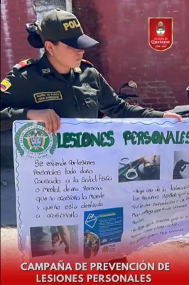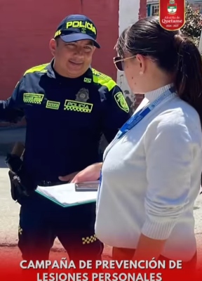 Junto a la Estación de Policía de Quetame adelantamos labores de control y prevención en los puntos más afectados del municipio por la lesiones personales, realizando campañas educativas, control a los establecimientos abiertos al público, registro a personal para así lograr la incautación de armas blancas y prevenir el delito.