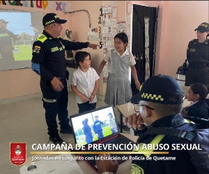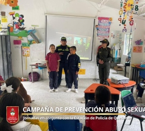 En conjunto con la Estación de Policía Quetame realizamos campaña preventiva contra el abuso sexual, iniciativa que busca a través de talleres y videos, enseñar a los menores a auto cuidarse y hacer un buen uso del tiempo libre. La actividad se llevó a cabo en las escuelas de Hoya Alta, Hoya Baja, Guamal Alto, Guamal Bajo y Guacapate.