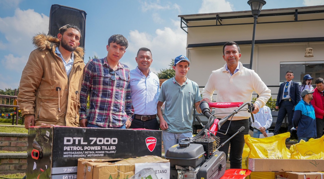 La incertidumbre de la juventud, relacionada con temas de trabajo y educación, ha generado migración hacia las ciudades y el abandono de municipios y veredas. Por eso, que tengamos jóvenes que quieran apostarle al campo es admirable, y desde el departamento queremos apoyarlos. Hoy entregamos insumos y maquinaria a jóvenes rurales y a víctimas del conflicto armado para el fortalecimiento productivo y el desarrollo rural: equipos de ordeño, fumigadoras, guadañas y concentrados para animales, entre otros.